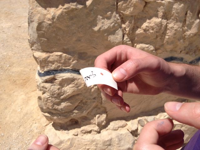 Lian's Hebrew name (Liat) written by rabbi at Masada