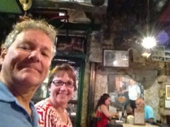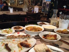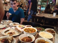eating at Dr. Shakshuka's in Jaffa |