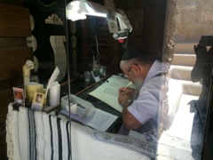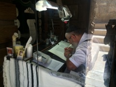 Rabbi writing Torah scroll