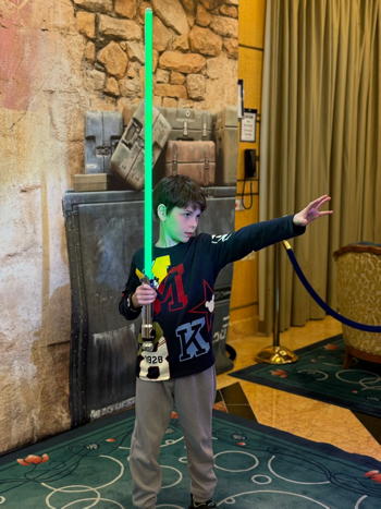 I need to figure out how to make web pages with photos from these excursions, because there are too many to post here easily. I'll put up two of my absolute favorites, though. The first is Shai as a Jedi knight: