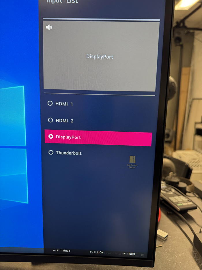 Use the joystick-thing to select "DisplayPort". The Windows desktop