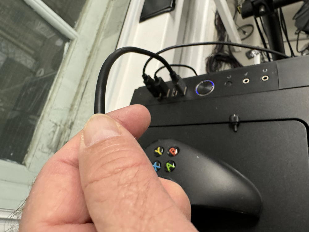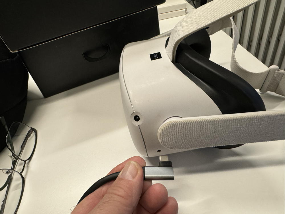 Next, check to be sure the long USB cable is plugged into the goggles: