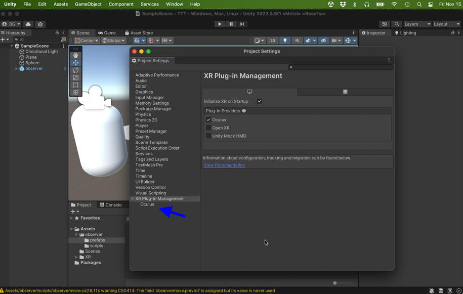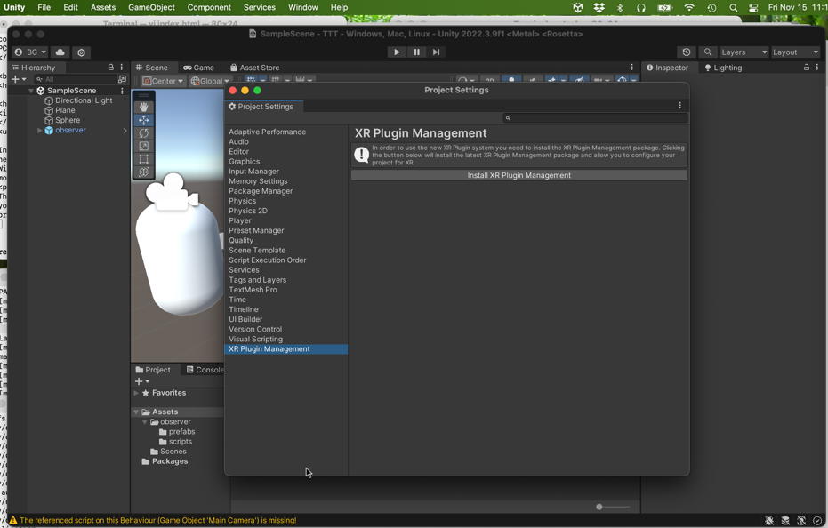 bottom), Then go ahead and click "Install XR Plugin Management"