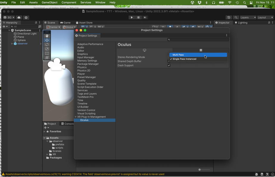 If the "Stereo Rendering Mode" is set to "Single Pass Instance",
