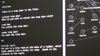 The Frotzophone is an interface for making music with interactive fiction. The topography simulated in the game is used to generate sound, as is the player's path through the game. A Frotzophone "performance" looks just like playing a text adventure; but in addition to playing a game, you're also playing music. After a brief performance demonstrating how the Frotzophone works, I'll talk about what went into building the software, and establish a framework for talking about how games, maps, and musical instruments are related to one another.