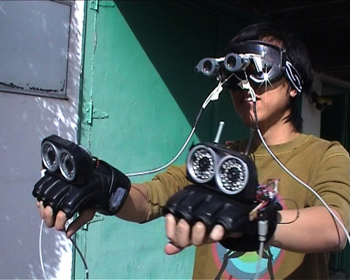 Project 1: Technology is powerful enough to transform oneÕs body experience. I am currently developing a wearable device called "Optical Handlers Ð Quadocular", which is a head mounted device that electronically alters or augments your visual experience by expanding your pair of eyes to two pairs, and extending them onto your hands. Project 2: Face Hack, a cinematic toy that allows you to role-play film characters by putting your real-time facial present onto someoneÕs body. Yes, enjoy Bruce lee's muscular chest below you neck!