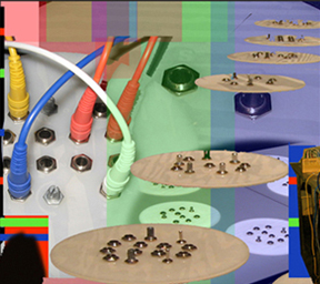 The interdisciplinary artist duo LoVid will present different permutations of their AV synthesizer Kiss Blink Sync Vessel. LoVid has been incorporating this handmade modular analog audio/video synth into sculptural instruments, installations, and media objects. LoVid will also give a short performance with their most recent wearable version of KBSV, Coat of Embrace, which allows them to break out family style while getting middle ages real old school.
