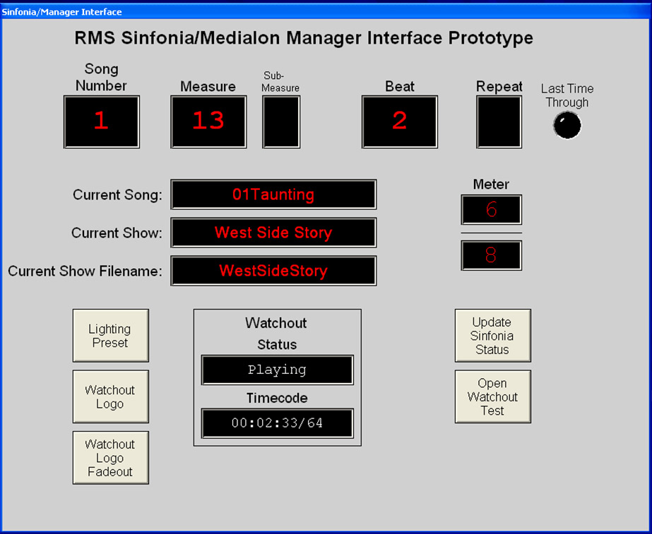 Modern entertainment and show control systems run in many different ways, but are often used in a linear mode, where all the elements of a show are locked to a fixed time base (and the time base is often linked to some linear media). For example, a prerecorded video might be played in a live show, and lighting and sound cues might then be programmed to trigger at precise times, down to the video frame. This approach is cost-effective and relatively easy to program, but, of course, the actors, dancers, musicians and other performers have to synchronize themselves to this pre-determined, rigid clock structure, and this severely limits the performance. Even with those limitations, however the majority of media-synchronized live shows today sacrifice flexibility in order to gain precision and control, and execute all lighting, video and other cues from a rigid clock. Professor John Huntington and Dr. David B. Smith, colleagues at NYC College of Technology's Entertainment Technology department, believe that that the technology should track the performers, not the other way around, and this is the focus of our research into the use of Musical Time as a synchronization source. Music runs on "musical" or "metric" time, where the musician or conductor has total control over the tempo, down to a beat level. Unlike linear time, Musical Time can slow down or speed up, allowing the music to respond to the actions of singers and other performers.