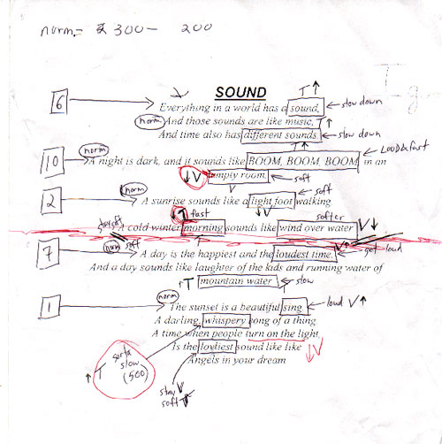 analyzed the rhythms of Igor's poem, and came up with logical places